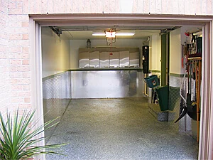 • Installed 4′ high band of punched aluminum slatwall around garage perimeter to “punch” up visual appearance a. also provided waterseal, and protection for car door when opening