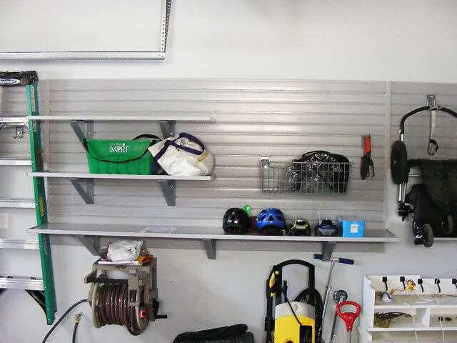 Adding a slatwall storage system to your garage walls will make it much easier to maintain an organized garage. The panels offer flexible storage for all of your garden tools.