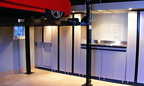 Visit some of our garage organization transformations which include the installation of a car lift: