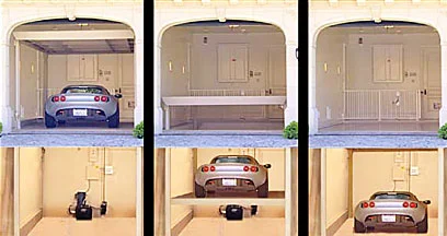 The deck structure and components are completely concealed below ground so there is no indication that a lift (or second car) is present when lowered. If your garage ceiling is high enough, you can access the lower vehicle without removing the upper vehicle!
