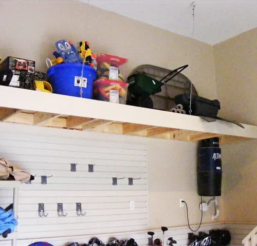 Shelving can be installed on side or back walls in a garage to increase the available storage space by storing narrow items high above the floor. There are a number of prefabricated shelving solutions, like Strong Racks, that work well in many situations. However, some garages have spaces with non-standard dimensions. A space that is either extremely wide or especially narrow won’t accommodate most standard, prefabricated shelving. By building shelving that fits your unique space, we ensure that you’ll get the most use out of the limited storage space available in your garage.