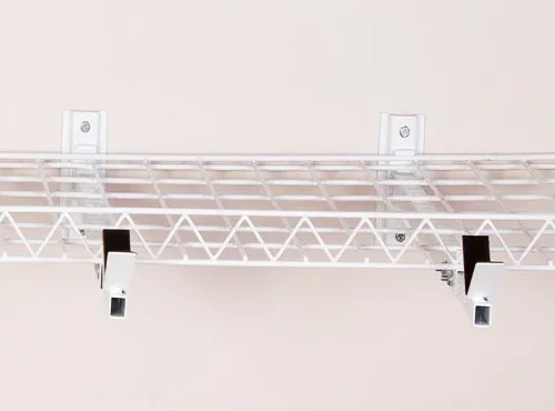 Our overhead platforms are built to be approximately 36″ deep and a minimum  of 30″ from the ceiling.  This sizing allows for standard bins to be double stacked on the platform.  Unlike many platforms that people would build themselves or have a handyman build for them, ours are different in that we finish our platforms with MDF trim along the front, bottom and sides to give it a feel and look of something that has been professionally done.  One of the other things that we do when we build our platforms is that we use airplane cable to attach to the ceiling so that you don’t have a piece of 2×4 hanging from the ceiling or coming up from the floor.  By using airplane cable we create a modern and clean looking storage solution that is capable of holding up to 750lbs.   We finish our platforms off by painting them in a colour that the client prefers which is often white but can sometimes be in a colour that matches the slatwall which has been installed.   Our customized platforms are built so that they can accommodate your outdoor patio furniture, THULE racks, tires and just about anything else that you want to get off the ground in your garage.
