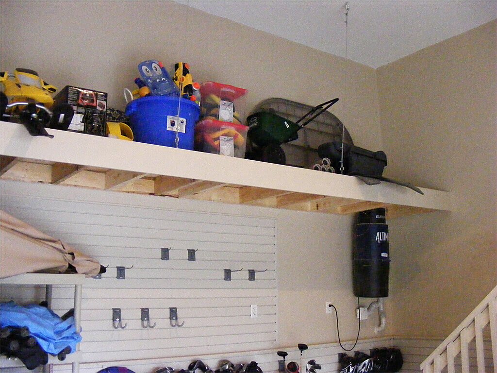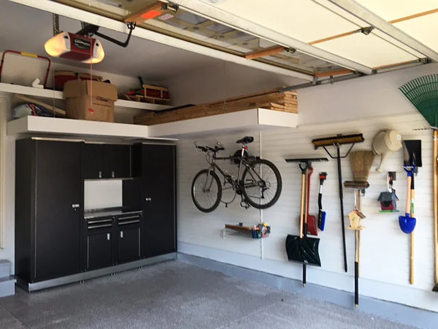 Whenever possible, it’s ideal to incorporate both wall organization and overhead storage. Wall organization systems make frequently used items like gardening tools and sports equipment easily accessible. Overhead storage racks are perfect for storing large, bulky items like kayaks and infrequently used items like holiday decorations.