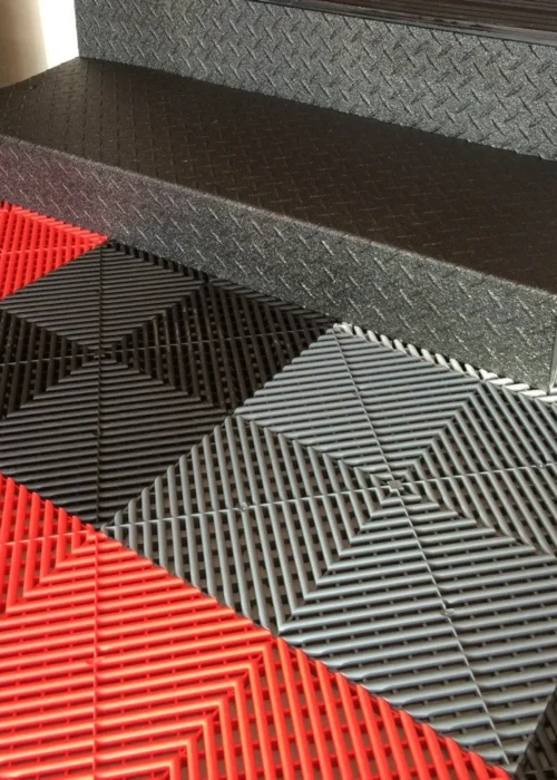 Any garage can be transformed from a dull grey concrete look to a spectacular living space for the entire family with Ribtrax garage floor tiles.