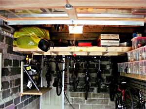 bicycle damaged by car in driveway - lack of garage storage systemThen there’s the satisfaction of having a designated space for everything from tires to gardening equipment, camping gear, bikes and power tools.  That means finding what you need when you need it. This can be accomplished with customized overhead storage shelves suspended from the ceiling, on slatwall outfitted with CamLok™ hooks or by installing Hercke, Onex or CTECH cabinet systems. A Garage Tailors Garage renovation will ensure your perfect garage and most likely mean you’ve got the nicest garage in your neighbourhood.